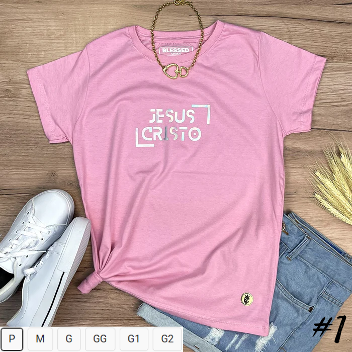 Camiseta Feminina Rosa Jesus Cristo Holográfico